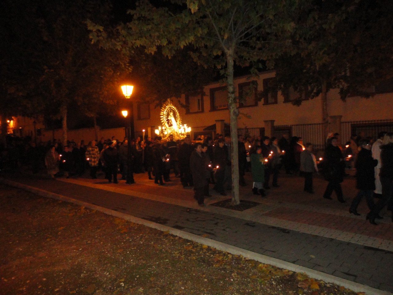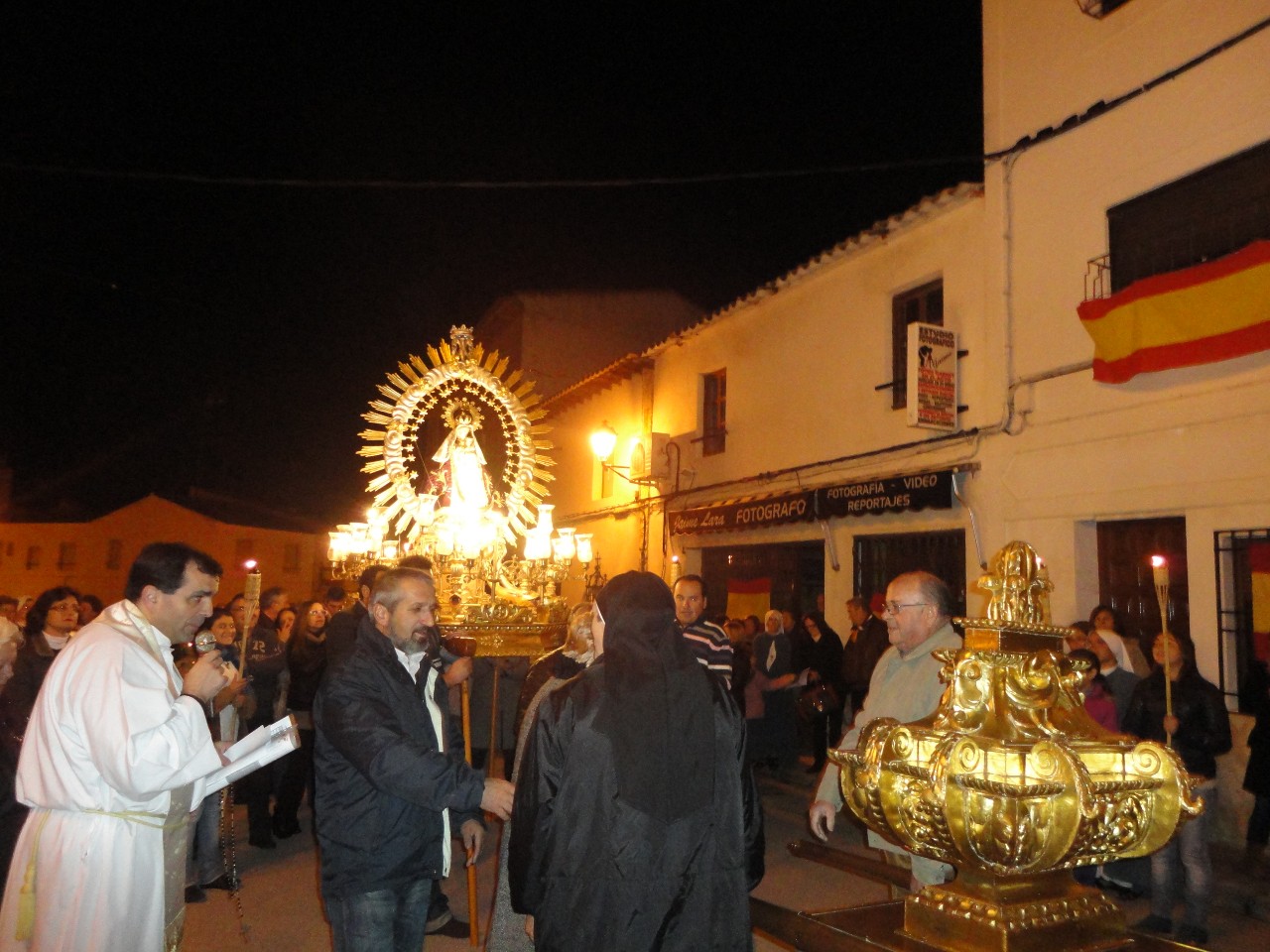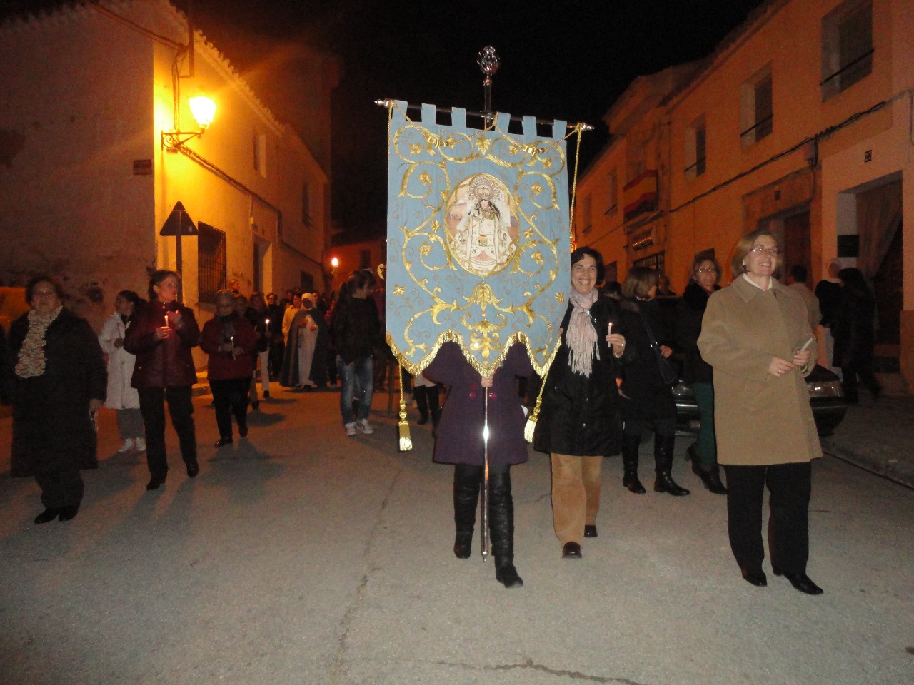 Muchos habitantes del pueblo de Belmonte asistieron al acto. Algunas jóvenes, se encargaron de que todos los presentes pudieran seguir el Rosario que acompañaba la procesión, repartiendo trípticos, velas y rosarios.